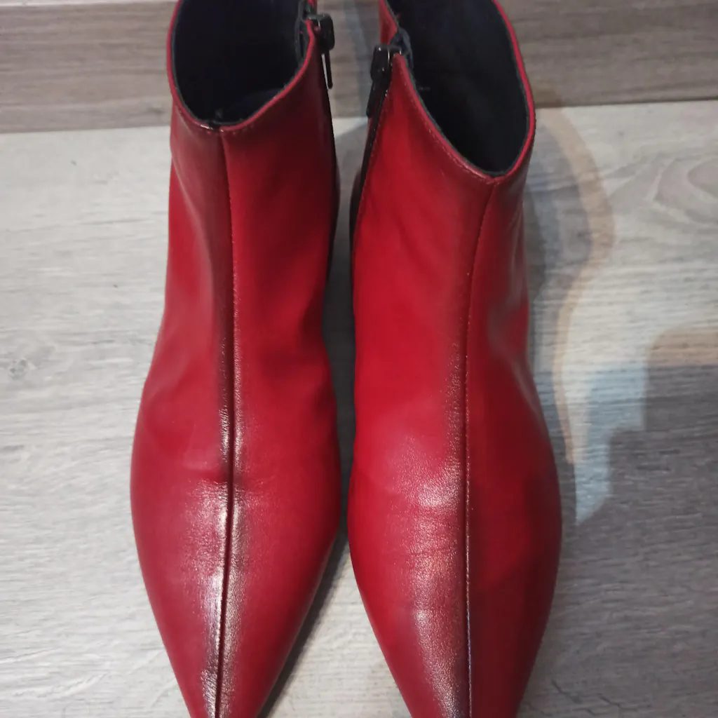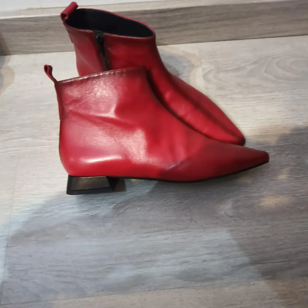Botin de mujer fabricado en piel color rojo con tacon de 1,5 cm.